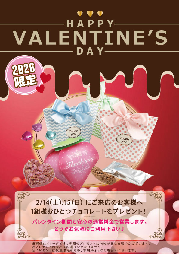 バレンタイン期間も安心の通常料金にて営業致します♪