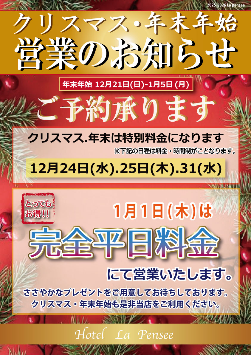 ★クリスマス・年末年始期間の営業時間と料金について★